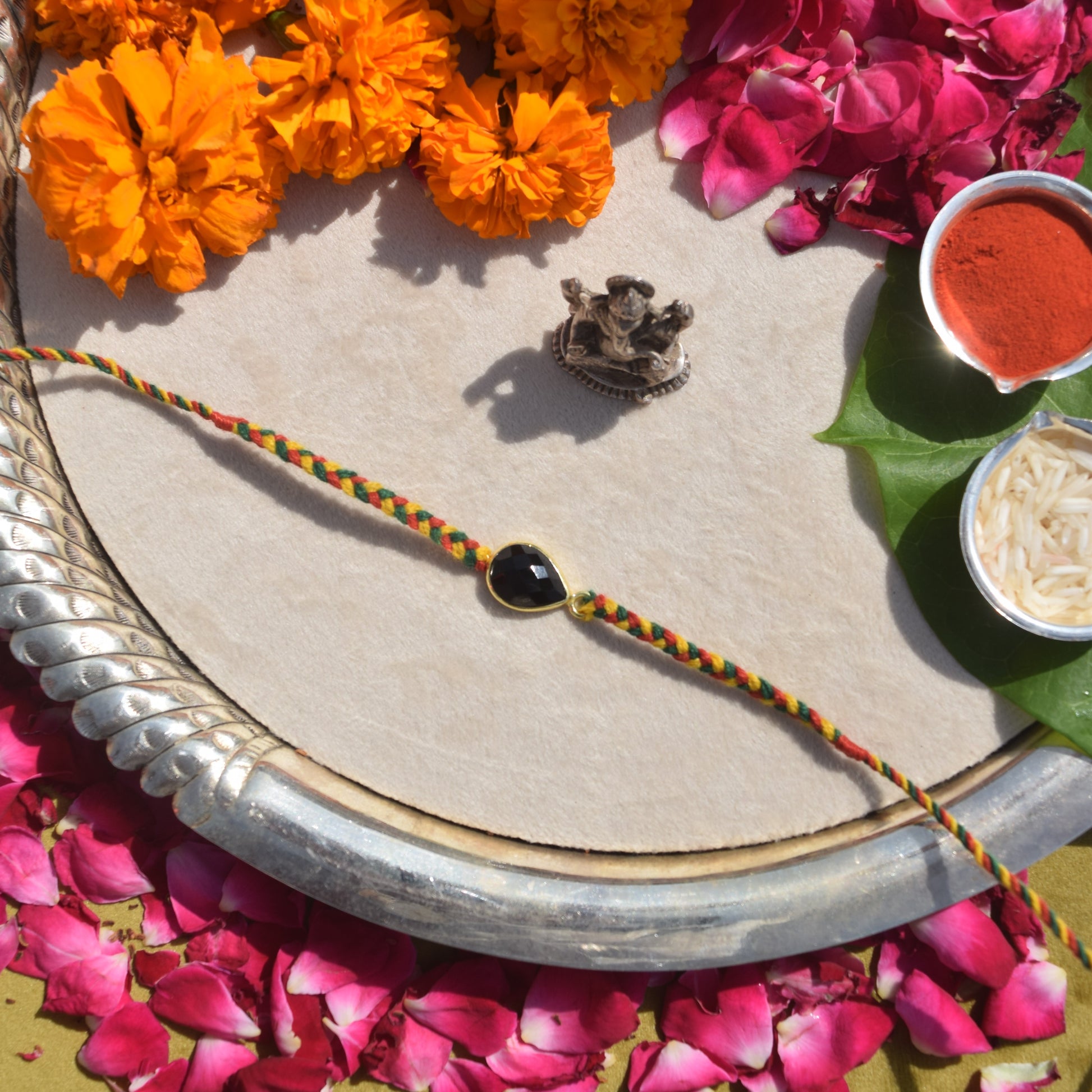 Natural Gemstone Black Onyx Rakhi for Brother