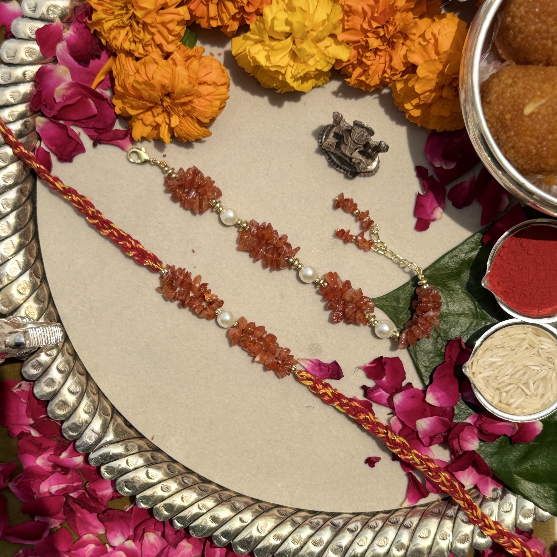 Natural Gemstone Carnelian & Signity Pearls Rakhi Pair